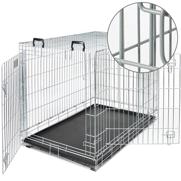 Дуже зручна у використанні цинкова клітина. Клітина для собак ідеальна для утримання вихованця в домашніх умовах і в подорожі. Легко збирається без використання інструментів. Спеціальна конструкція замків і петель запобігає довільному відкриття дверей Завдяки ніжкам з гумовим покриттям клітина не ковзає, не дряпає покриття підлоги