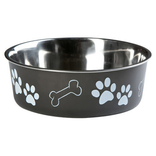 Flamingo Bella ФЛАМІНГО БЕЛЛА миска для собак, нержавіюча сталь, чорний з малюнком лап